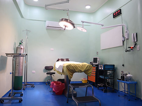 Quirófano para Cirugías, Hospital de Cuidados Post Operatorios, Laboratorio Químico Biológico y Consulta Médica.